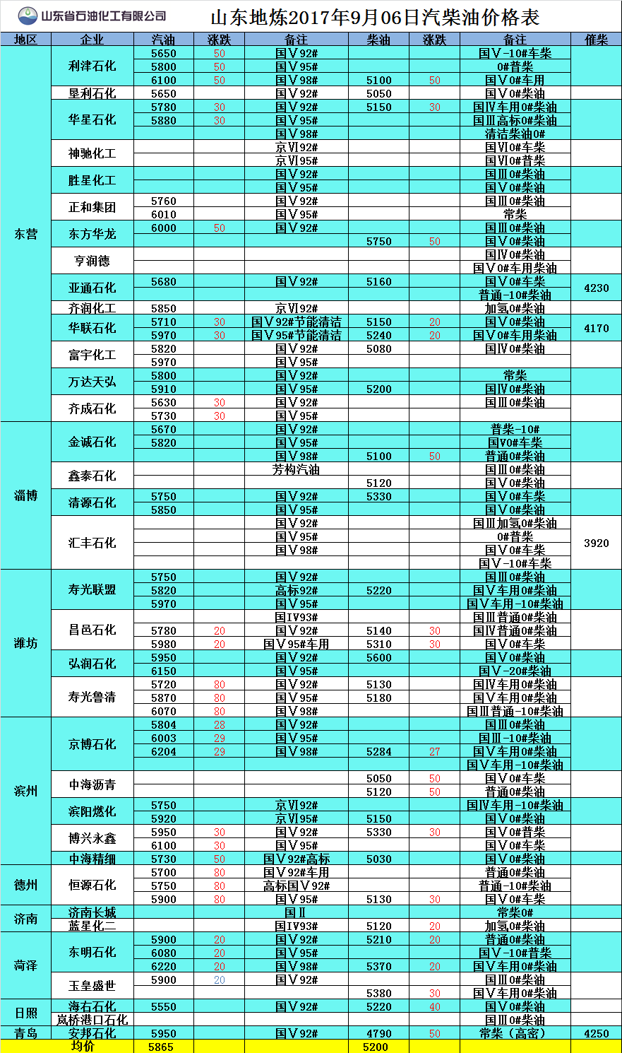 山東地?zé)?017年9月06日汽柴油價(jià)格表