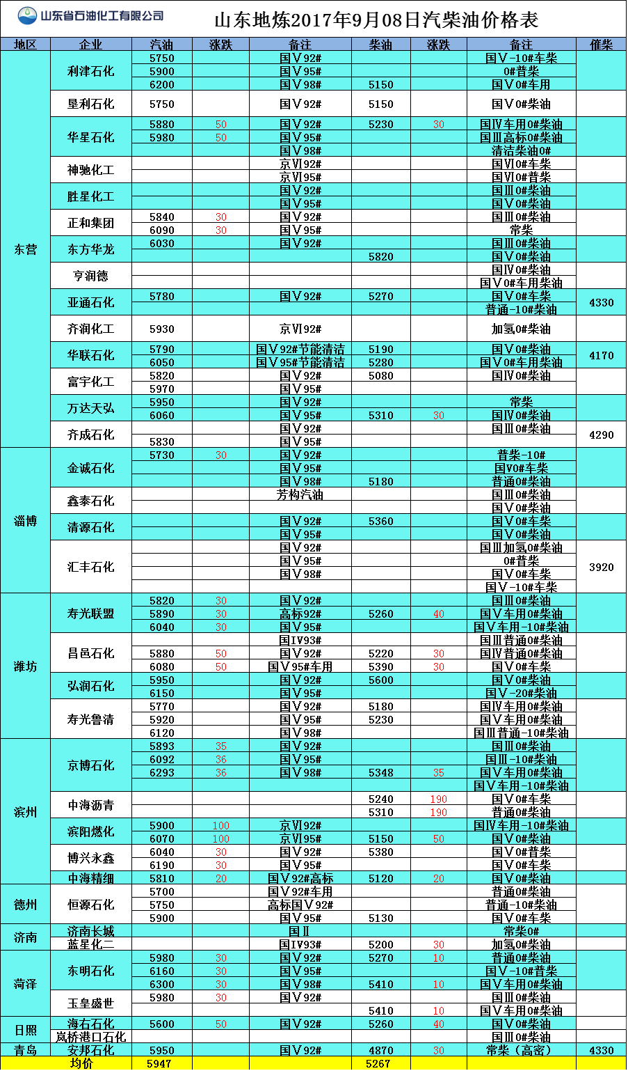 山東地?zé)?017年9月08日汽柴油價(jià)格表