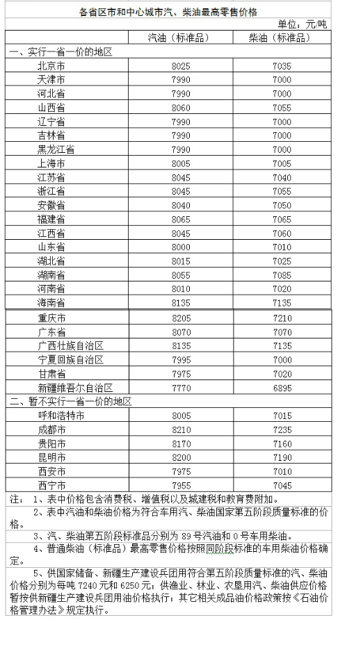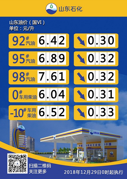 按照現(xiàn)行成品油價(jià)格形成機(jī)制,自2018年12月28日24時(shí)起,國(guó)內(nèi)汽、柴油價(jià)格(標(biāo)準(zhǔn)品,下同)每噸分別降低370元和355元。相關(guān)價(jià)格聯(lián)動(dòng)及補(bǔ)貼政策按現(xiàn)行規(guī)定執(zhí)行。