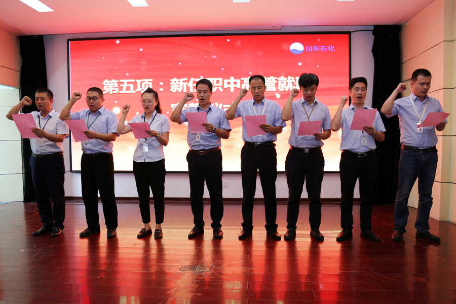 隨后,舉行山東石化新聘中高層就職宣誓儀式。他們將繼續(xù)忠于黨、忠于祖國,忠于公司,恪盡職守、廉潔奉公,接受員工、客戶及社會(huì)監(jiān)督,為山東石化使命與愿景而努力奮斗!