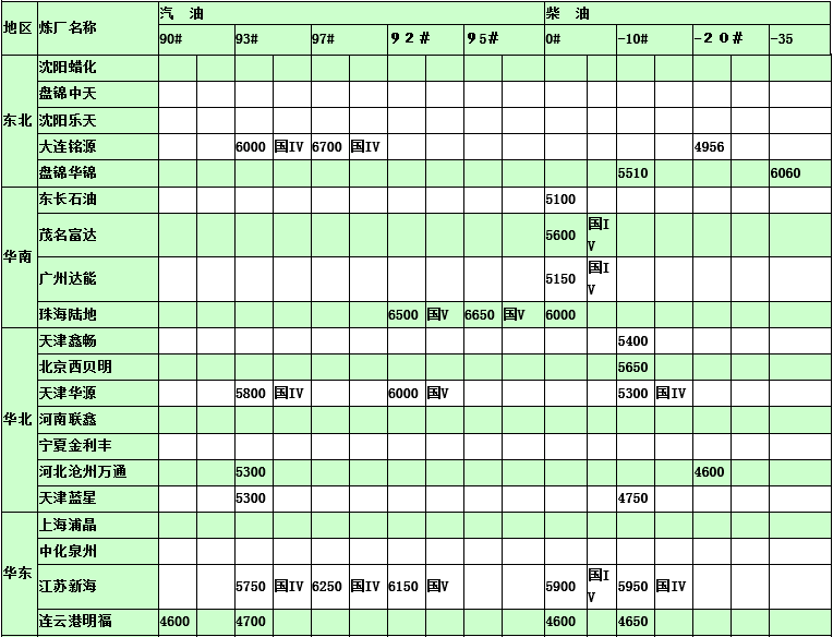 國(guó)內(nèi)煉廠2015年2月11日汽柴油價(jià)格表