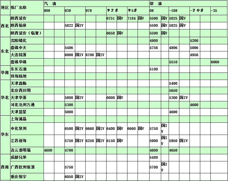 國內(nèi)煉廠2015年2月11日汽柴油價(jià)格表