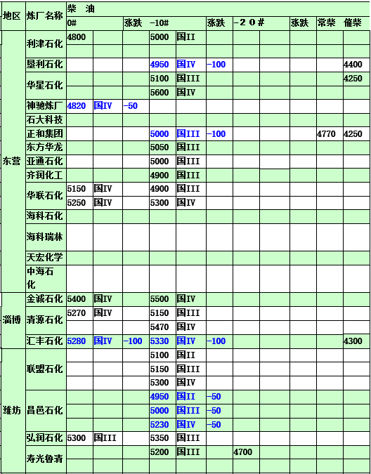 國(guó)內(nèi)煉廠2015年3月5日汽柴油價(jià)格表