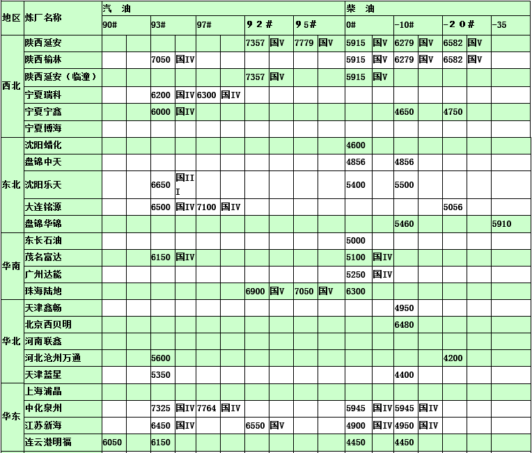 國(guó)內(nèi)煉廠2015年3月17日汽柴油價(jià)格表
