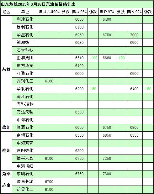 國(guó)內(nèi)煉廠(chǎng)2015年3月17日汽柴油價(jià)格表