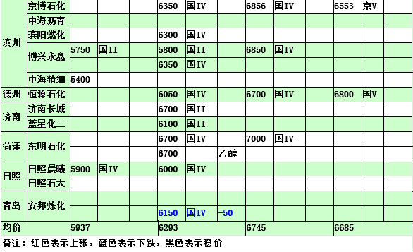 2015年3月25日山東地煉汽油價格