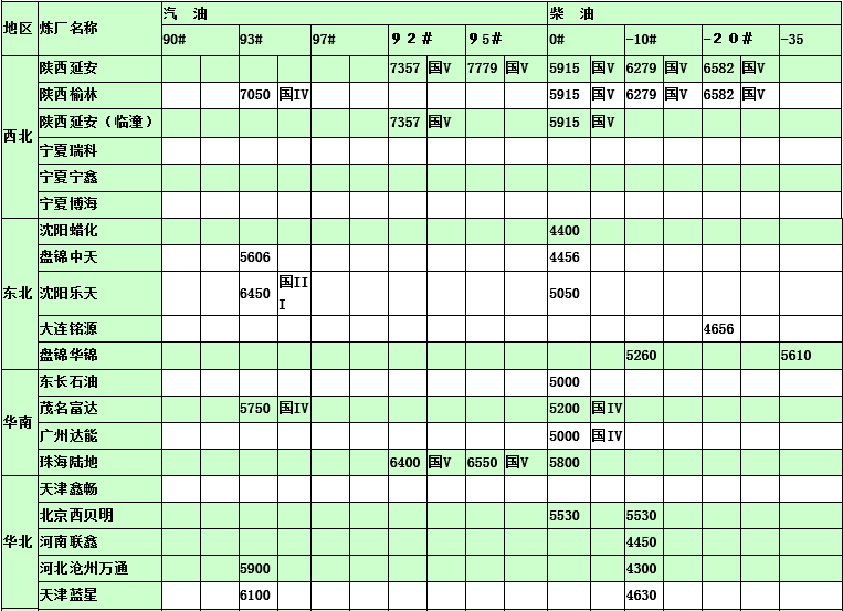 國內煉廠2015年4月2日汽柴油價格表