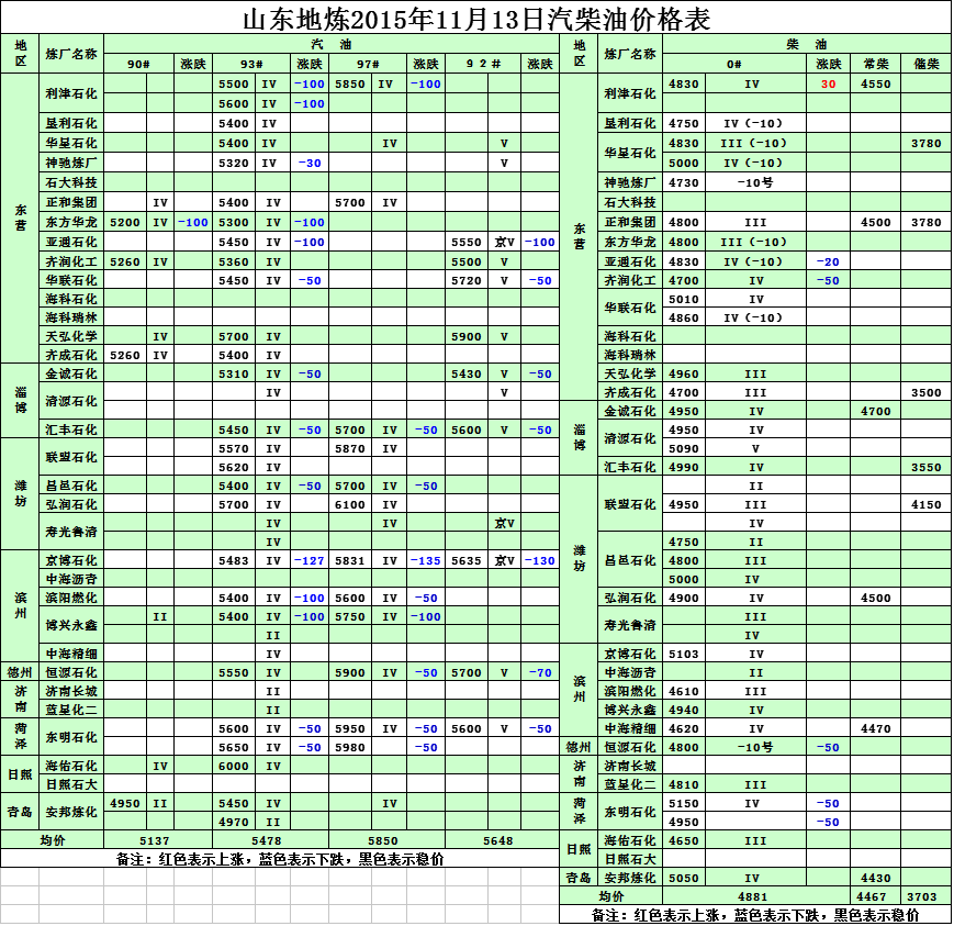 2015年11月13日山東地?zé)捚裼蛢r格表
