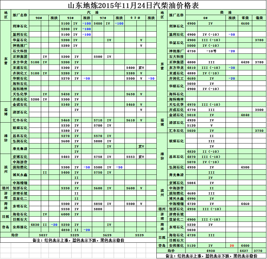 2015年11月24日山東地?zé)捚裼蛢r格表
