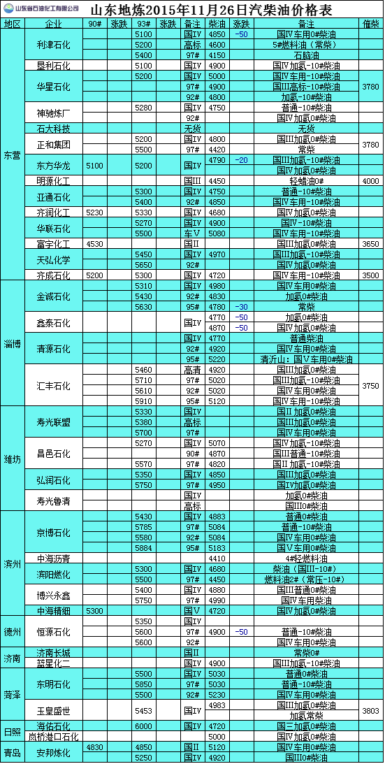 2015年11月26日山東地?zé)捚裼蛢r(jià)格表
