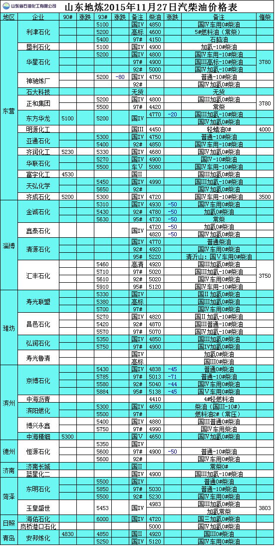 2015年11月27日山東地?zé)捚裼蛢r(jià)格表