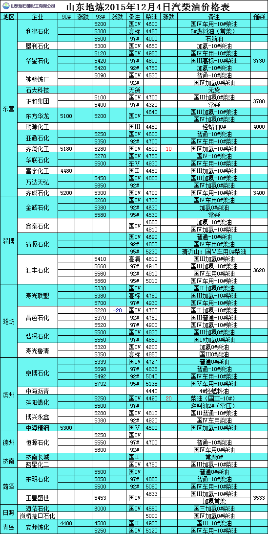 2015年12月4日山東地?zé)捚裼蛢r格表