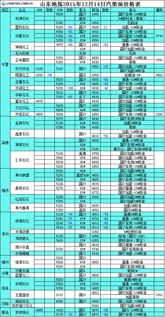 2015年12月14日山東地?zé)捚裼蛢r格表