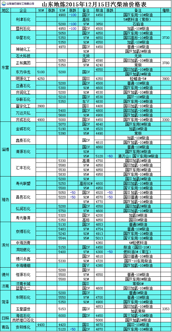2015年12月14日山東地?zé)捚裼蛢r格表