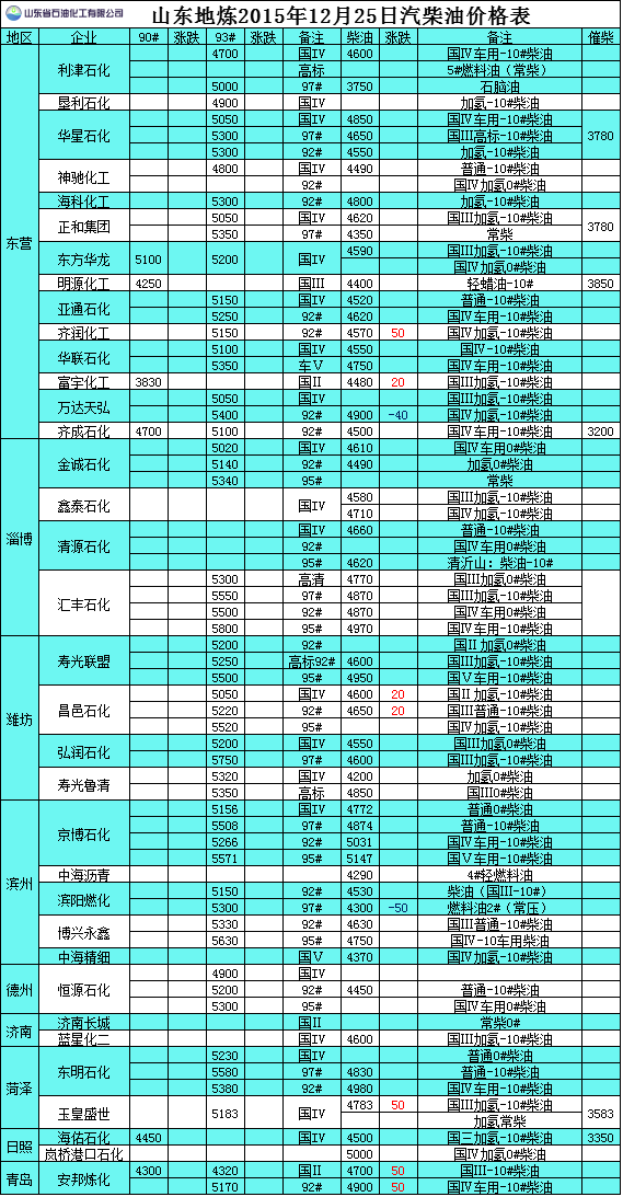 2015年12月25日山東地?zé)捚裼蛢r格表