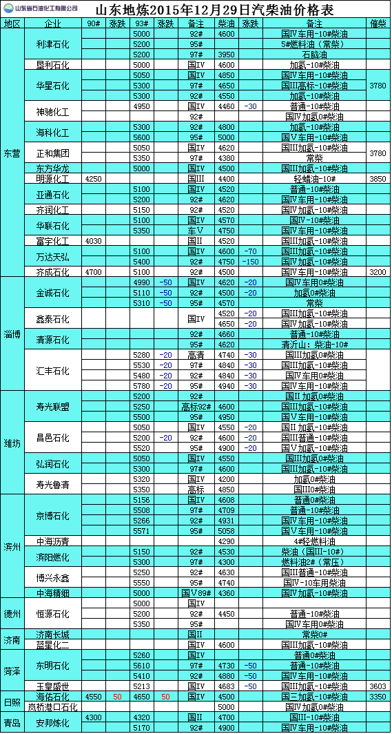 2015年12月29日山東地?zé)捚裼蛢r(jià)格表