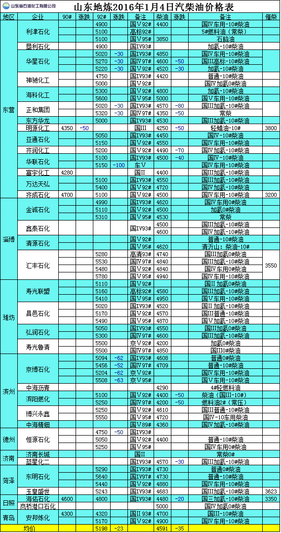 2016年1月4日山東地?zé)捚裼蛢r(jià)格表
