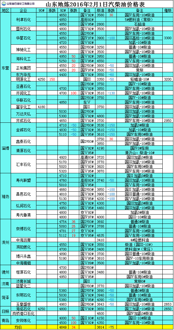 2016年2月1日山東地?zé)捚裼蛢r(jià)格表