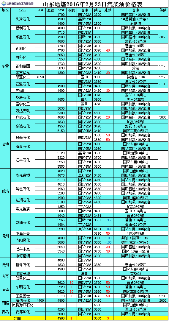 2016年2月23日山東地?zé)捚裼蛢r格表