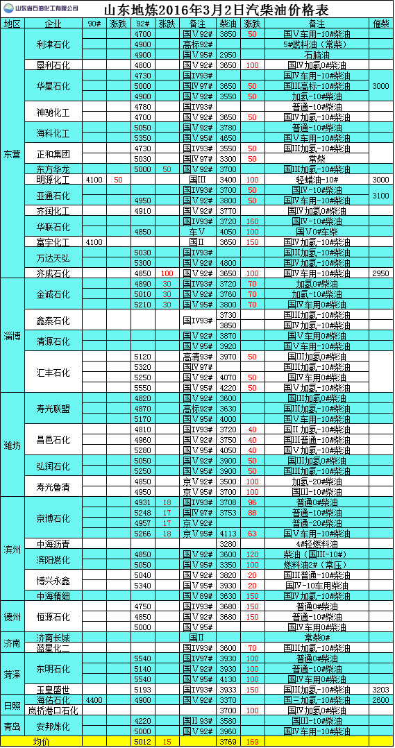 2016年3月3日山東地?zé)捚裼蛢r格表