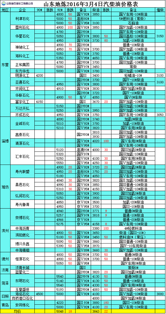 2016年3月4日山東地?zé)捚裼蛢r(jià)格表