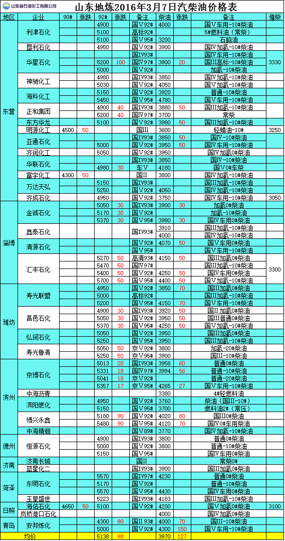 2016年3月7日山東地?zé)捚裼蛢r(jià)格表