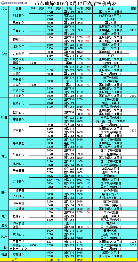 2016年3月17日山東地?zé)捚裼蛢r格表