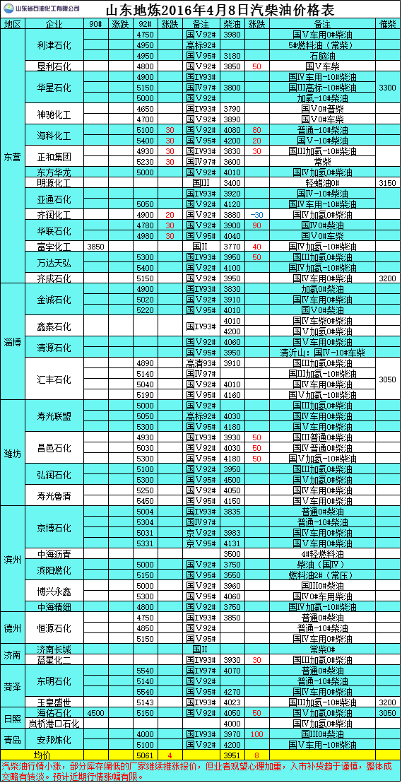 2016年4月8日山東地?zé)捚裼蛢r格表