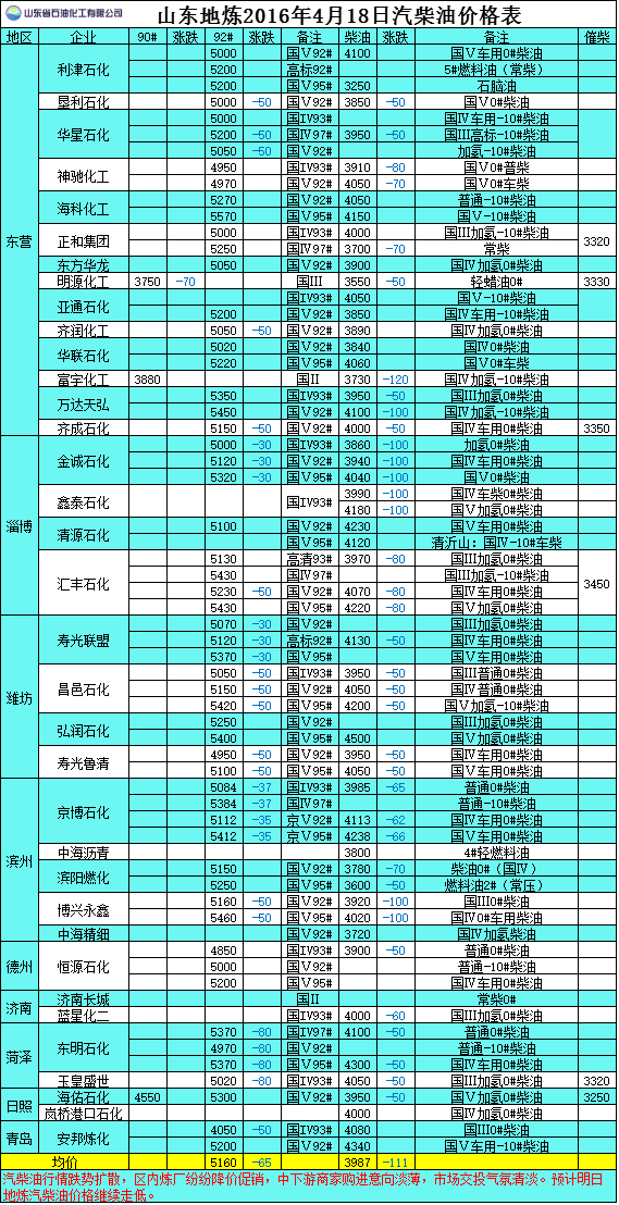 2016年4月18日山東地?zé)捚裼蛢r(jià)格表