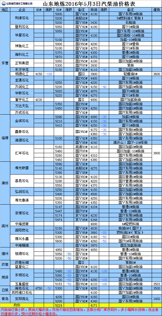 2016年5月3日山東地?zé)捚裼蛢r(jià)格表