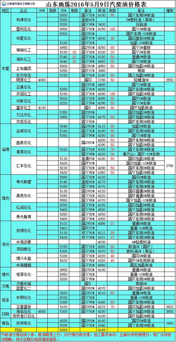 2016年5月9日山東地?zé)捚裼蛢r(jià)格表