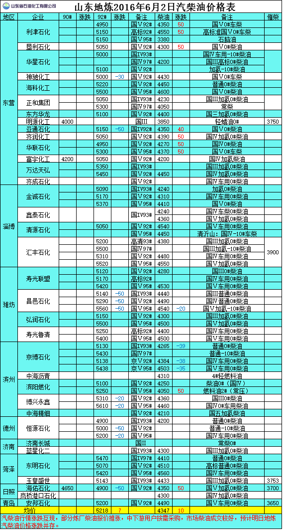 2016年6月2日山東地?zé)捚裼蛢r(jià)格表