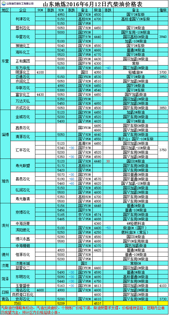 2016年6月12日山東地?zé)捚裼蛢r(jià)格表