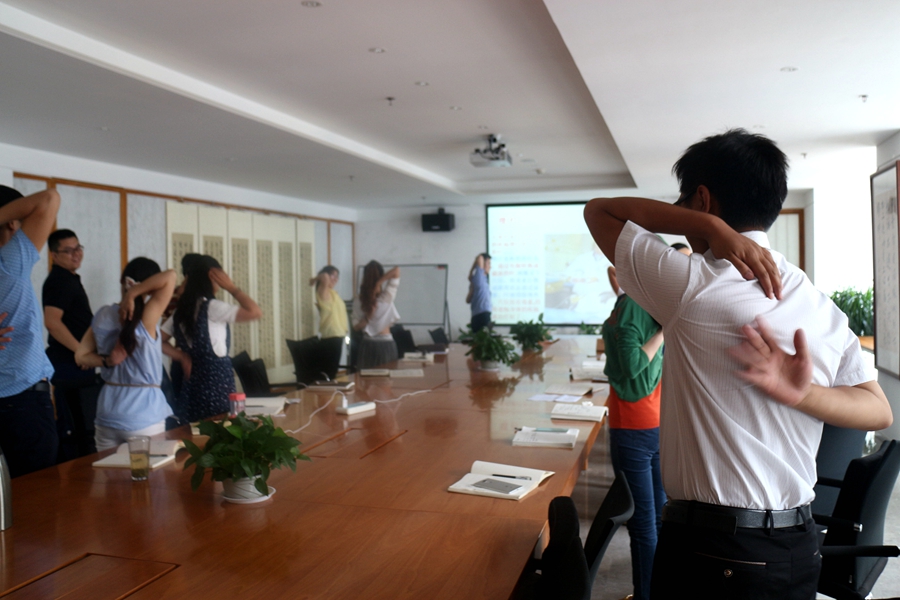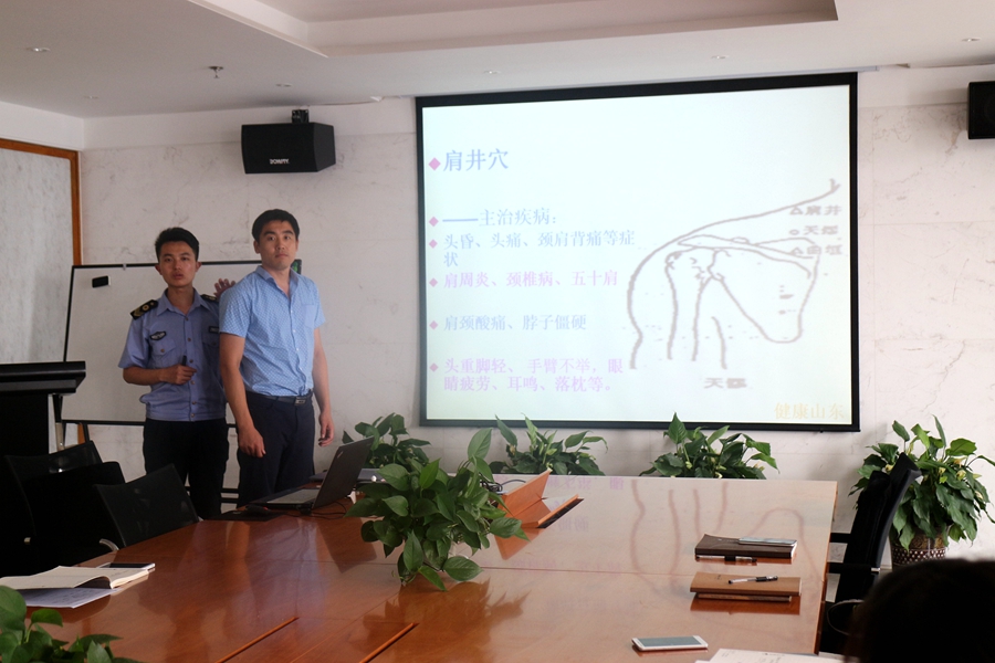 針對(duì)辦公室人員常見(jiàn)的聲帶嘶啞、肩周炎、腰肌勞損、鼠標(biāo)手等職業(yè)性常見(jiàn)疾病,提出預(yù)防和改善的辦法,通過(guò)人體穴位的物理治理,能夠達(dá)到預(yù)防和改善的目的。講座內(nèi)容生動(dòng)、充實(shí),有事例、有操作、有示范,較為符合辦公室人員的職業(yè)特點(diǎn),有較強(qiáng)的針對(duì)性。