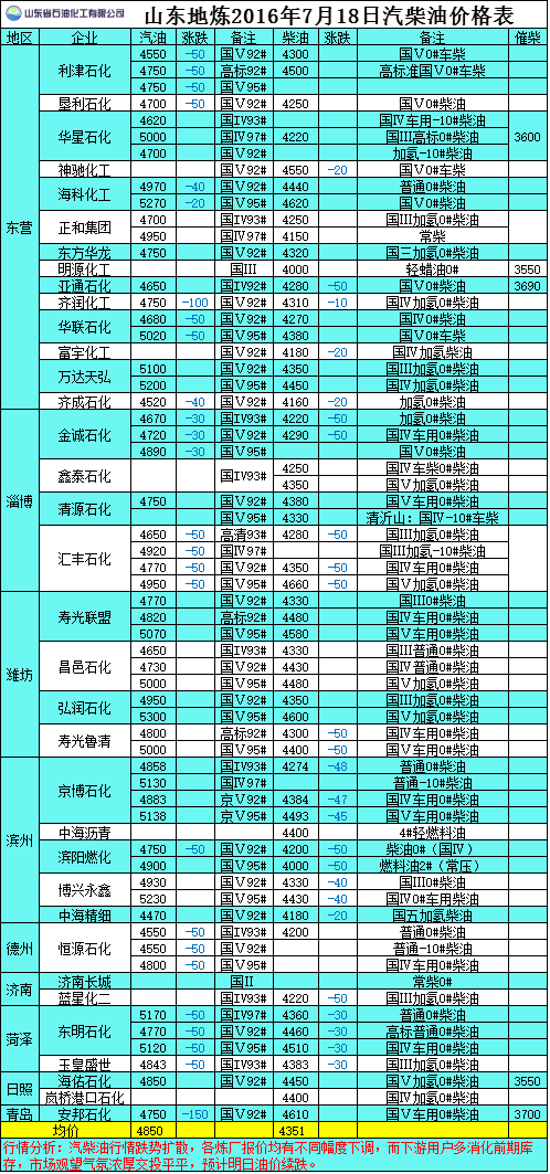 7月18日山東地?zé)捚裼蛢r格