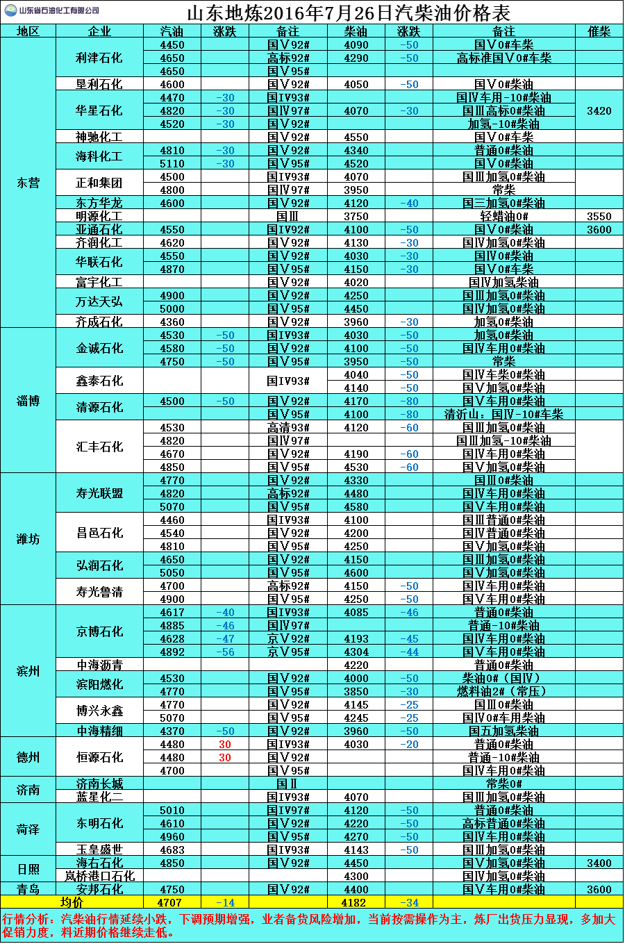 行情分析:汽柴油行情延續(xù)小跌,下調(diào)預(yù)期增強(qiáng),業(yè)者備貨風(fēng)險增加,當(dāng)前按需操作為主,煉廠出貨壓力顯現(xiàn),多加大促銷力度,料近期價格繼續(xù)走低。