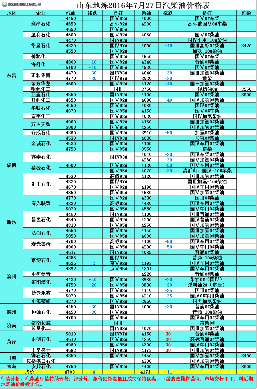 行情分析:汽柴油行情持續(xù)弱勢,部分煉廠報價繼續(xù)走低且成交保持優(yōu)惠,下游購進(jìn)操作謹(jǐn)慎,市場交投平平,料近期地?zé)捰蛢r繼續(xù)走低。