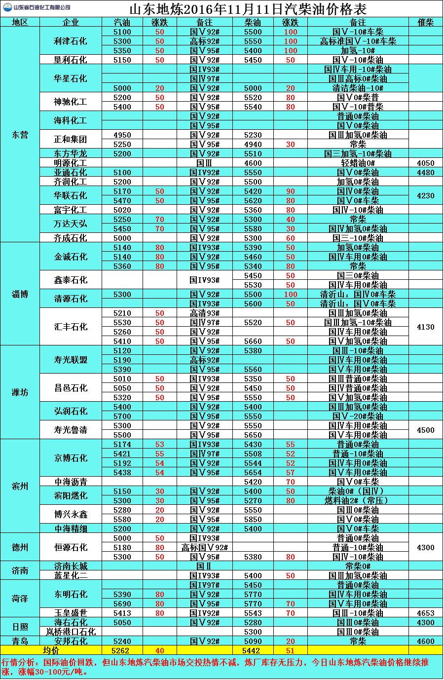 行情分析:國際油價回跌,但山東地煉汽柴油市場交投熱情不減,煉廠庫存無壓力,今日山東地煉汽柴油價格繼續(xù)推漲,漲幅30-100元/噸。