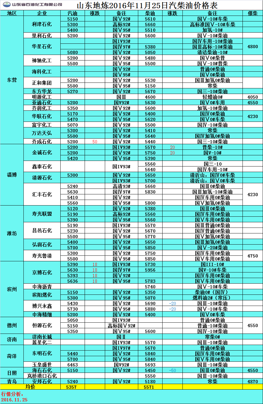 11月25日山東地煉汽柴油價格