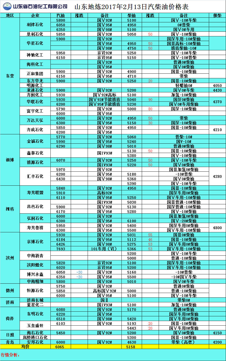 2017年2月13日山東地?zé)捚裼蛢r格